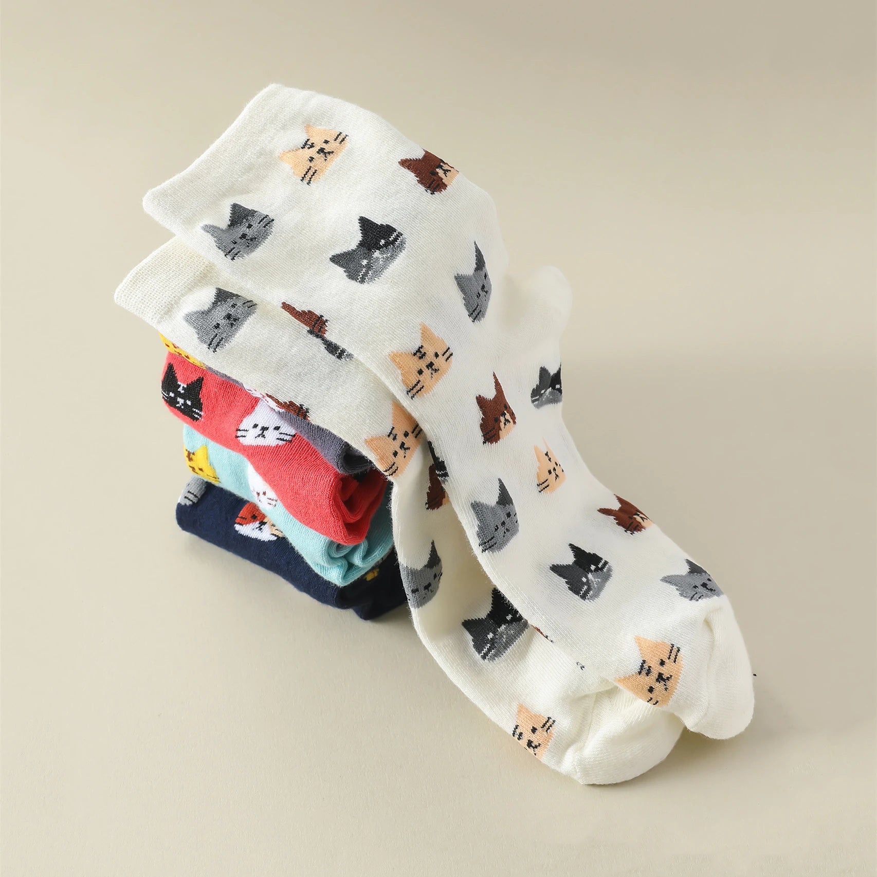 5 Pairs Women Cat Pattern Crew Funny Cartoon Socks Lot